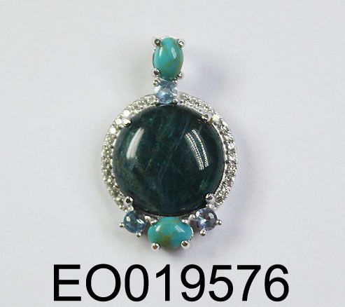 Silver Pendant with Amazonite , White CZ , Champagne CZ ( EO019708)