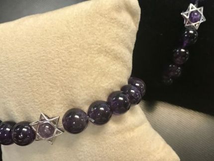 8mm & 4mm Round Beads Bracelet w/ 925 Hexagon Star (BR12081)