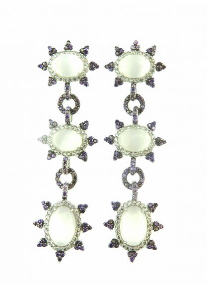Silver Earrings with Syn Cat Eye ,Purple CZ ,White CZ ( EE019658)