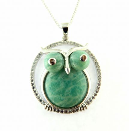 Silver Pendant with Amazonite , White CZ , Champagne CZ ( EO019708)