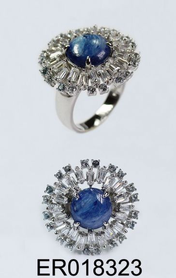 Silver Earring With Blue Kyanite, White CZ